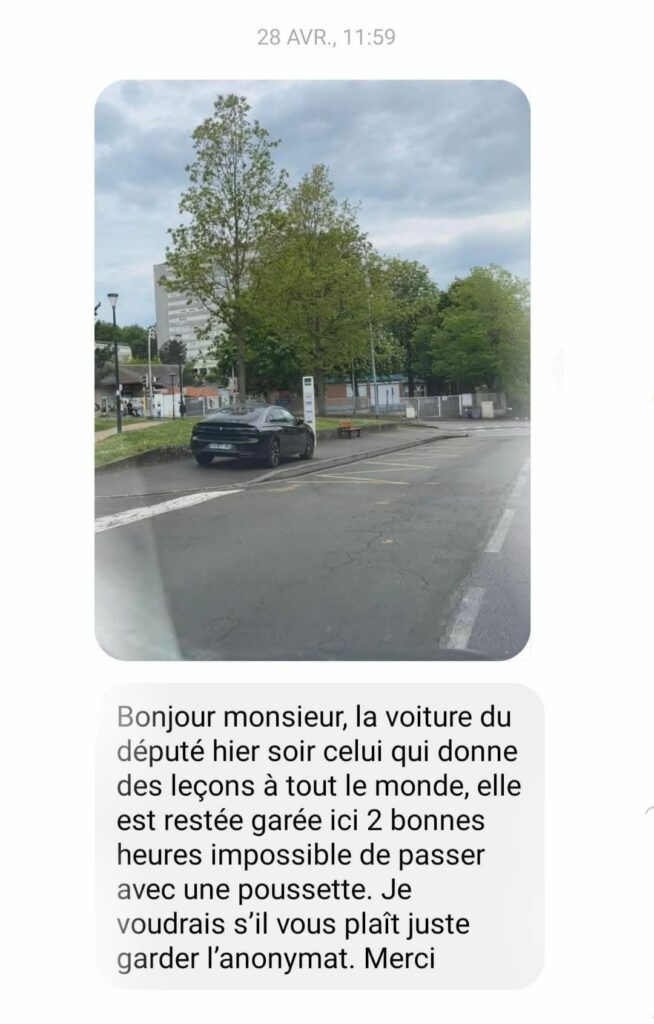 Malheureusement la réalité est tout autre mais surtout lui a échappé. Comme de nombreux Pisciacais l’ont constaté, la voiture du député ne se trouvait pas sur un passage piéton… mais bel et bien sur un trottoir. Un détail qui change tout : le code de la route est clair, le stationnement sur trottoir est strictement interdit, sauf dérogation explicite par marquage au sol ou panneau, ce qui n’était pas le cas.